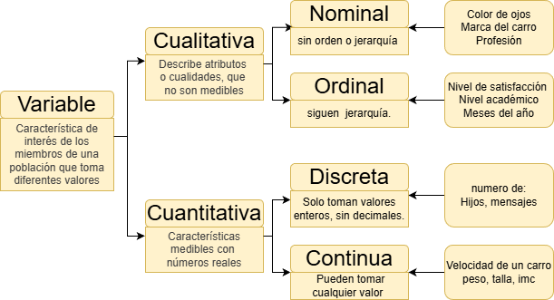 | variable | tipo de variable | clasificación | niveles |