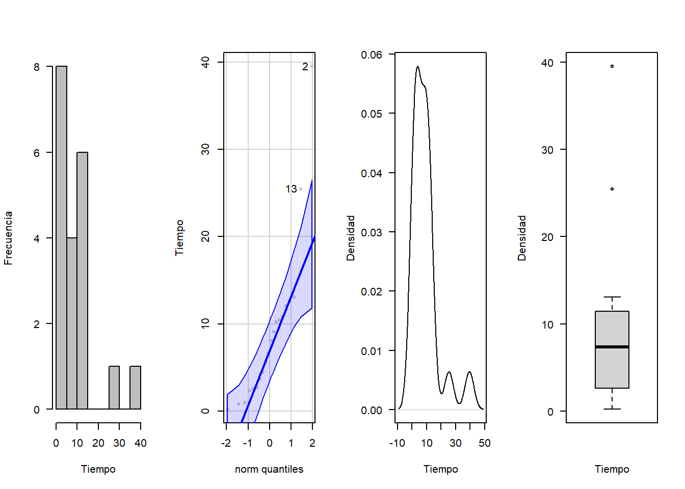 tiempo<-c(3.69, 39.50, 4.43, 2.70, 9.11, 10.21, 10.44, 2.57, 5.68, 0.80,12.63, 2.35, 25.47, 8.07, 0.96, 0.21, 12.06, 10.79, 6.58, 13.06)